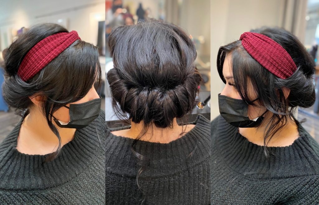 We chose Grand-Red for this simple Zoom meeting updo!