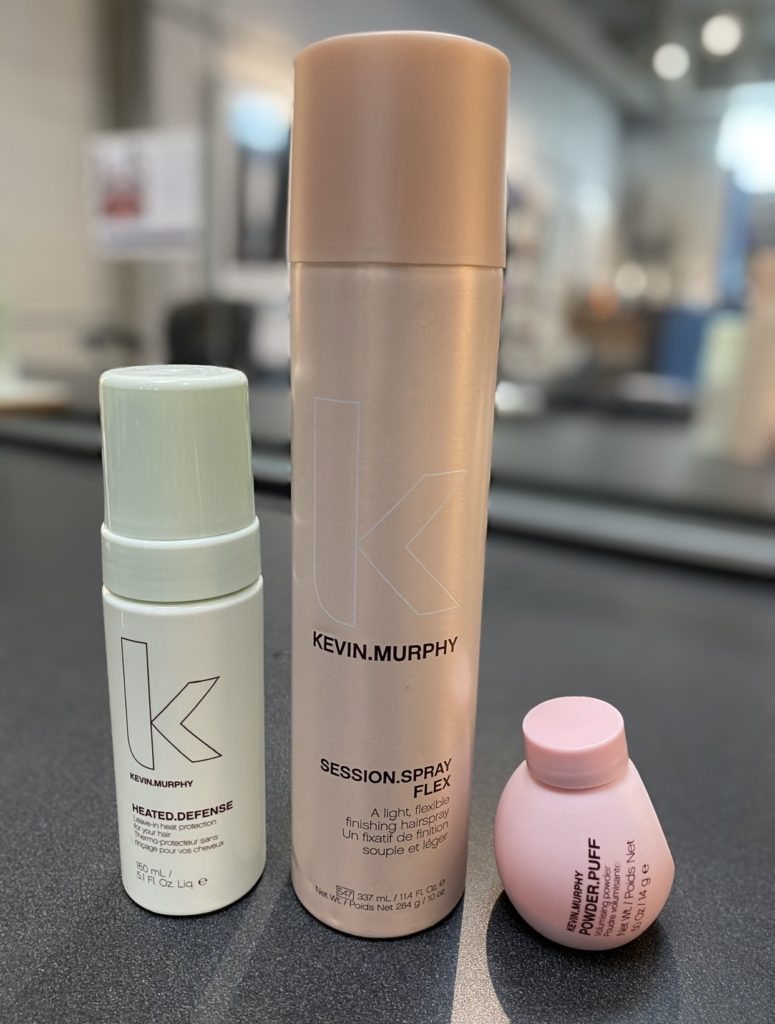 As you finish a section, spray Session.Spray Flex by Kevin Murphy to help hold the style and seal in your curl. This is a flexible hairspray that doesn’t get sticky or stiff and helps beat humidity as well!