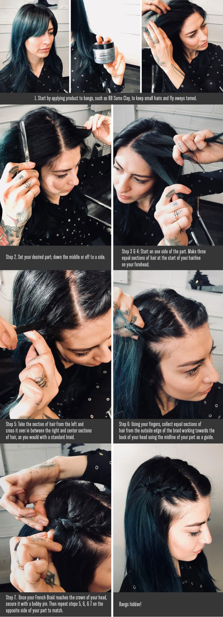 Corinne teaches us how to hide bangs when growing them out with and easy step-by-step french braid tutorial.