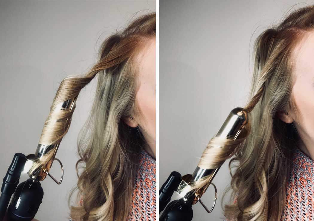 Step 2: Grab 1 1/2 Inch Sections and starting in the center, start curling hair away from face