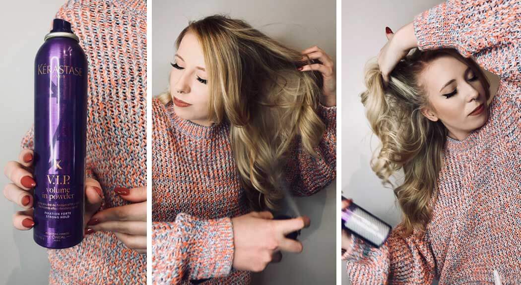 Step 8: Grab your favorite Kerastase Volume in powder texture spray and spray evenly through hair