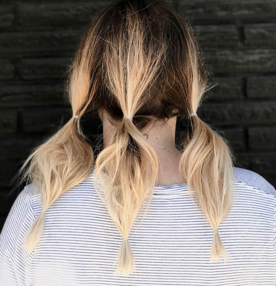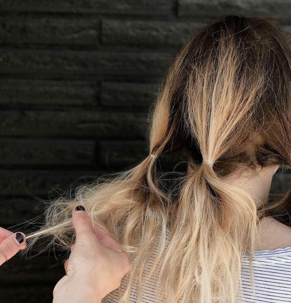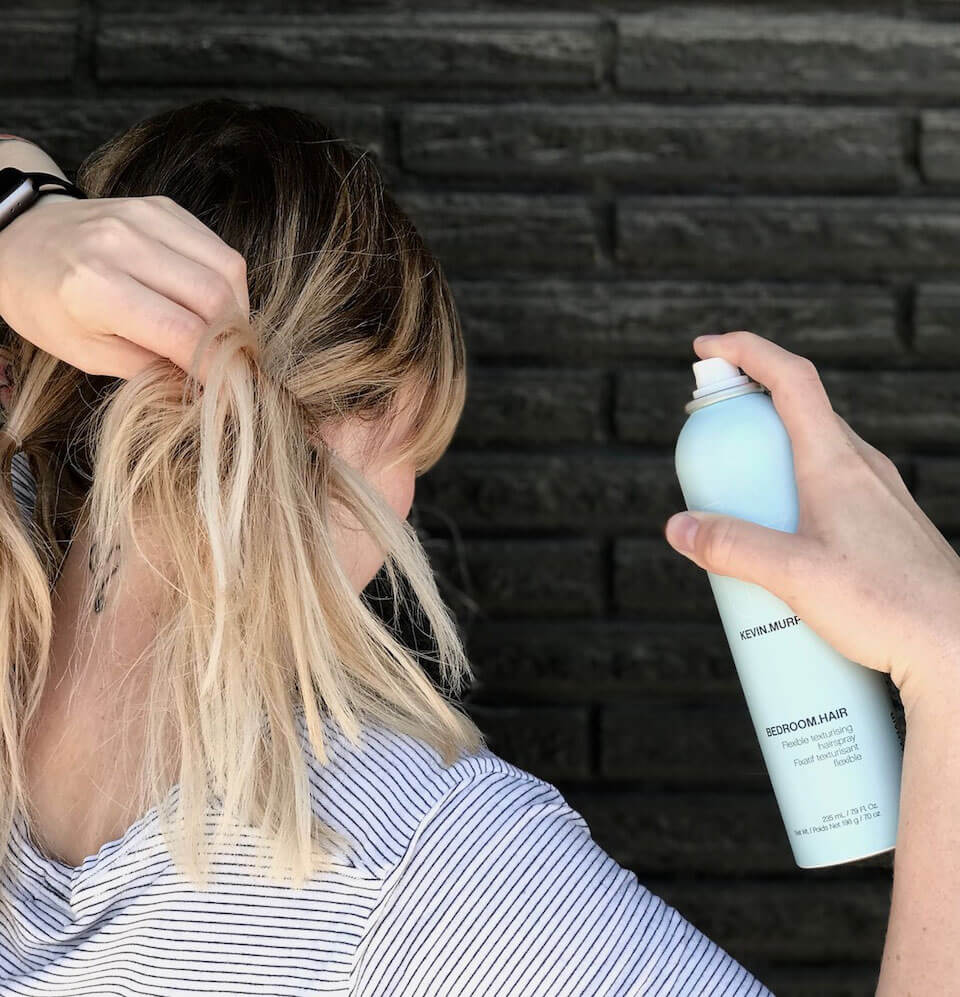 Step 3: Spray in your favorite texturizer into each pony. (Our favorite is Kevin Murphy’s Bedroom Hair